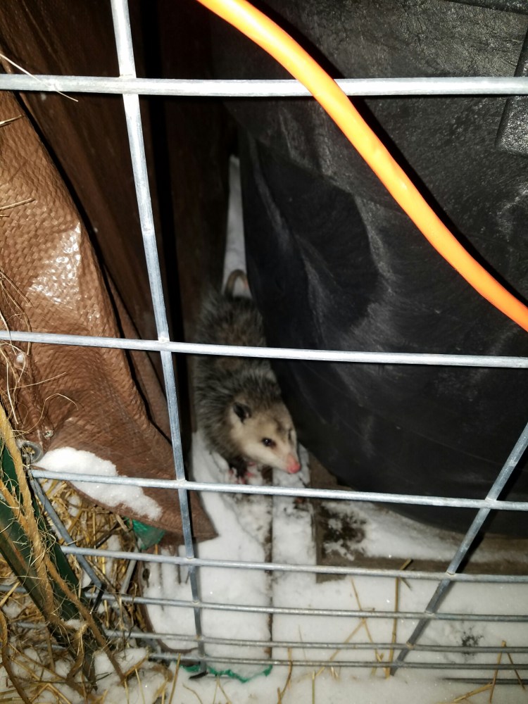 The pig’s butcher date has arrived and as I was feeding them their last bag of feed I ran into a little visitor near the water. It was already dark and I discovered we had possum in the pen. The pigs smelled it but didn’t do much, similarly the possum stayed out of their way.