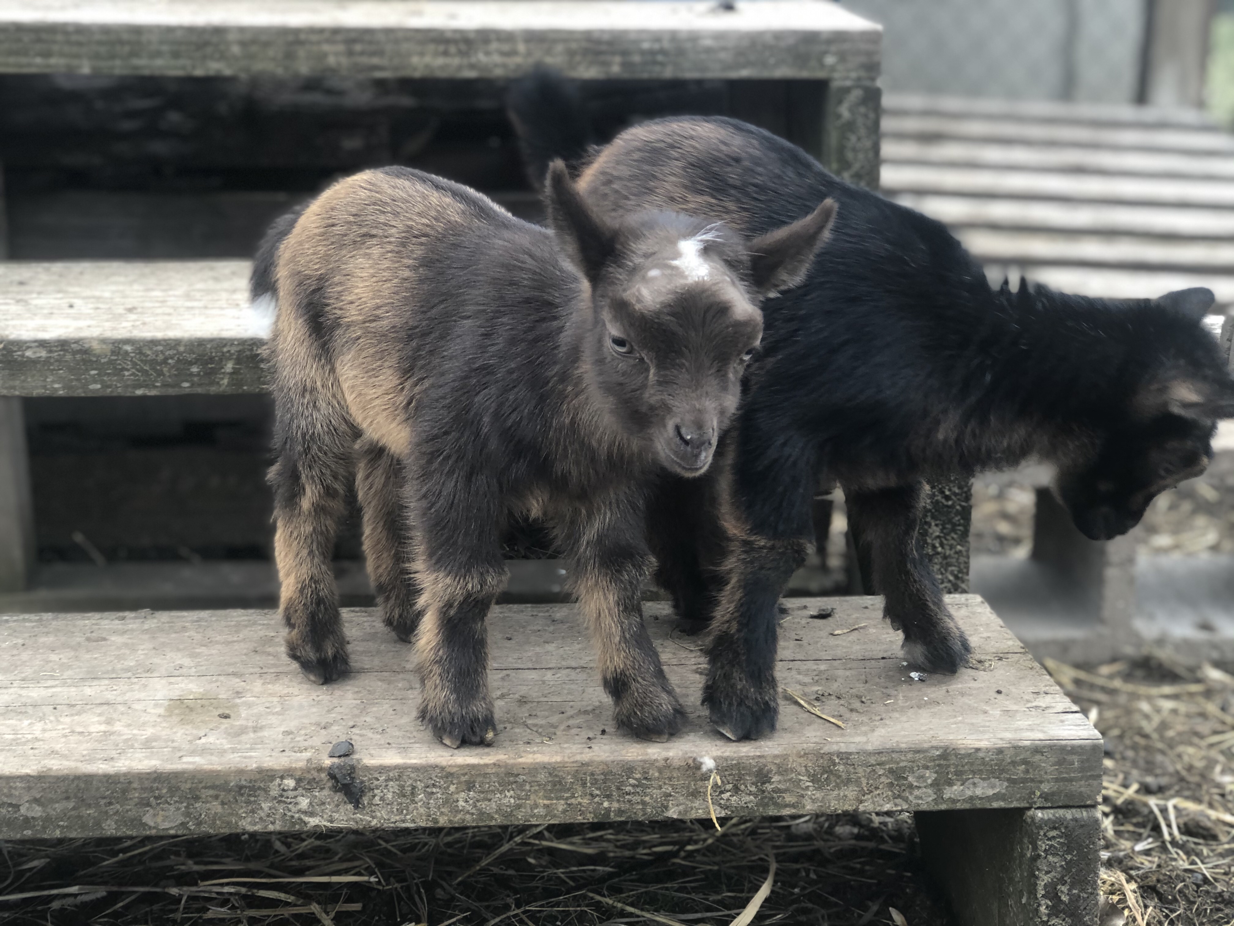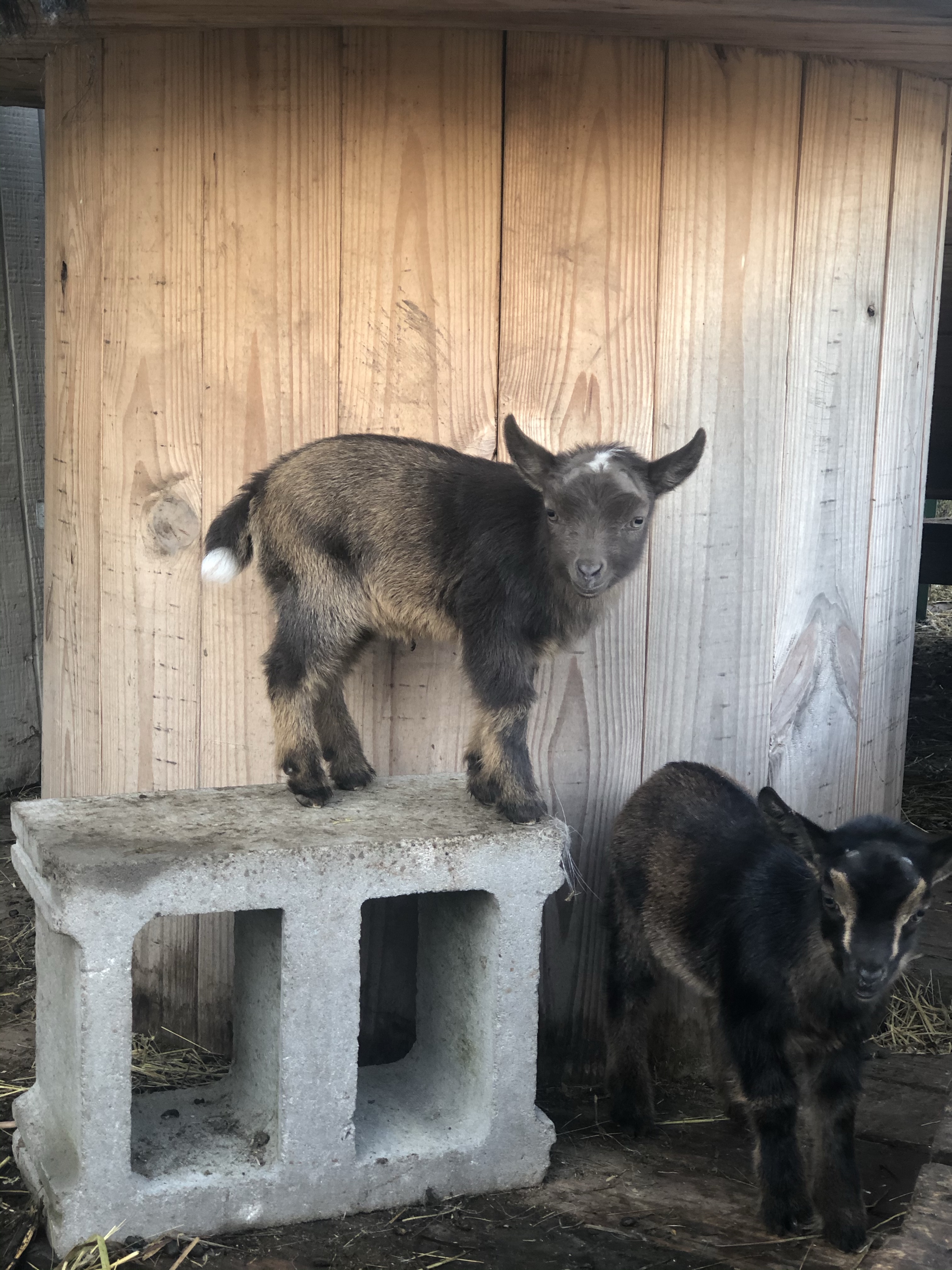 We also welcomed a pair of doelings that are some of the most playful babies we have seen on the farm. Rosie delivered early in the midst of a April snow storm. Unfortunately, one of the girls delivered and managed to get under the fence in the barn and was by the main door. When I arrived I rushed the babies into the house to warm up. They ended up great but as a result, the second baby did not attach to Rosie and vice versa. She acts like a bottle baby. We plan on selling one of them and know she will be a great 4 H project.